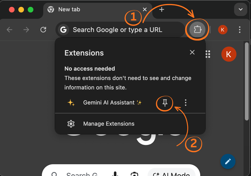 Navigate to Extensions Settings, and click on "Details" under Gemini AI Assistant ✨, and choose 'Site settings' , scroll to Microphone and select 'Allow'. This way you can activate Speech to Text.