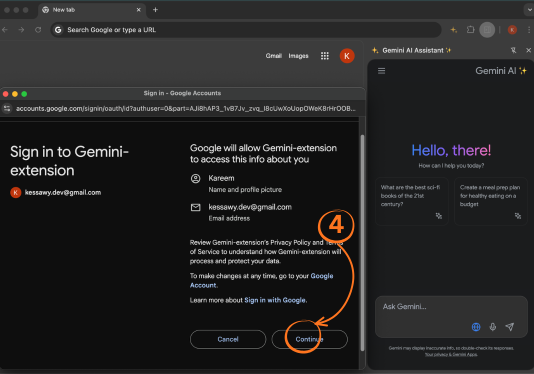 Authenticate to Gemini™ with your Google account through the automatic pop-up page.
